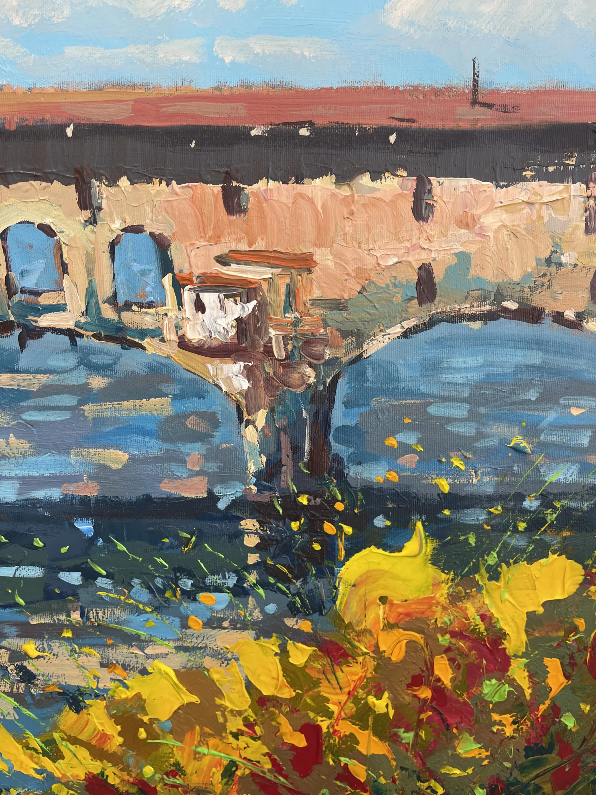 This painting is a modern interpretation of the classic Water Lilies theme. In my Textured Modern Impressionismstyle, I used deep blues and vibrant pinks to represent the depth of the water, while the thick layers of oil paint on the lilies create a striking contrast. The palette knife allowed me to “sculpt” the light on the surface of the pond, giving the entire scene an energetic and tactile feel..